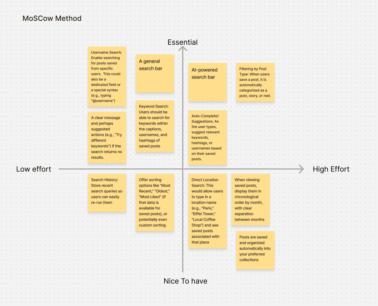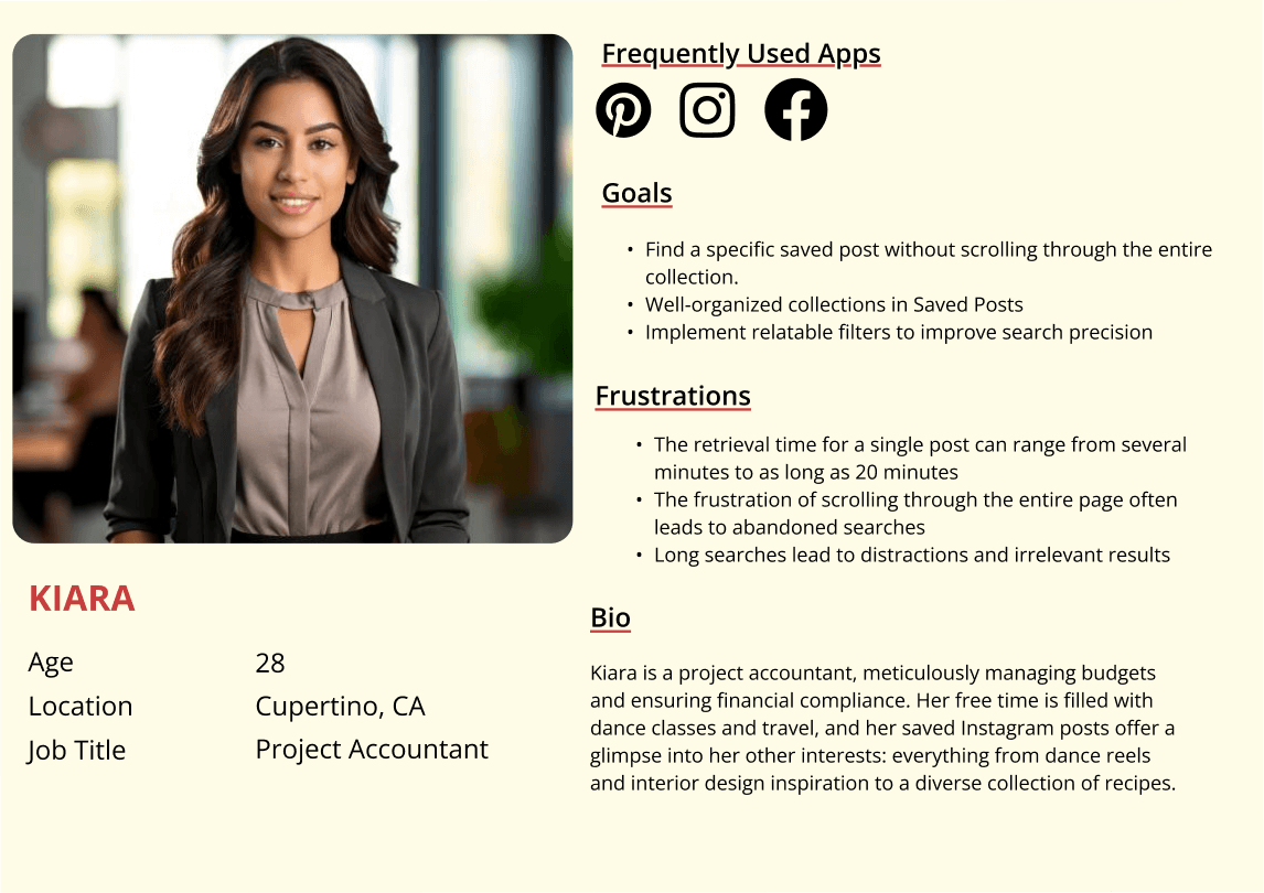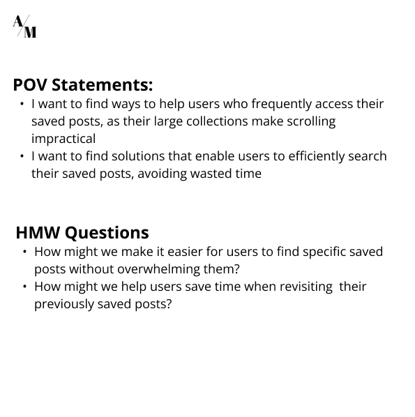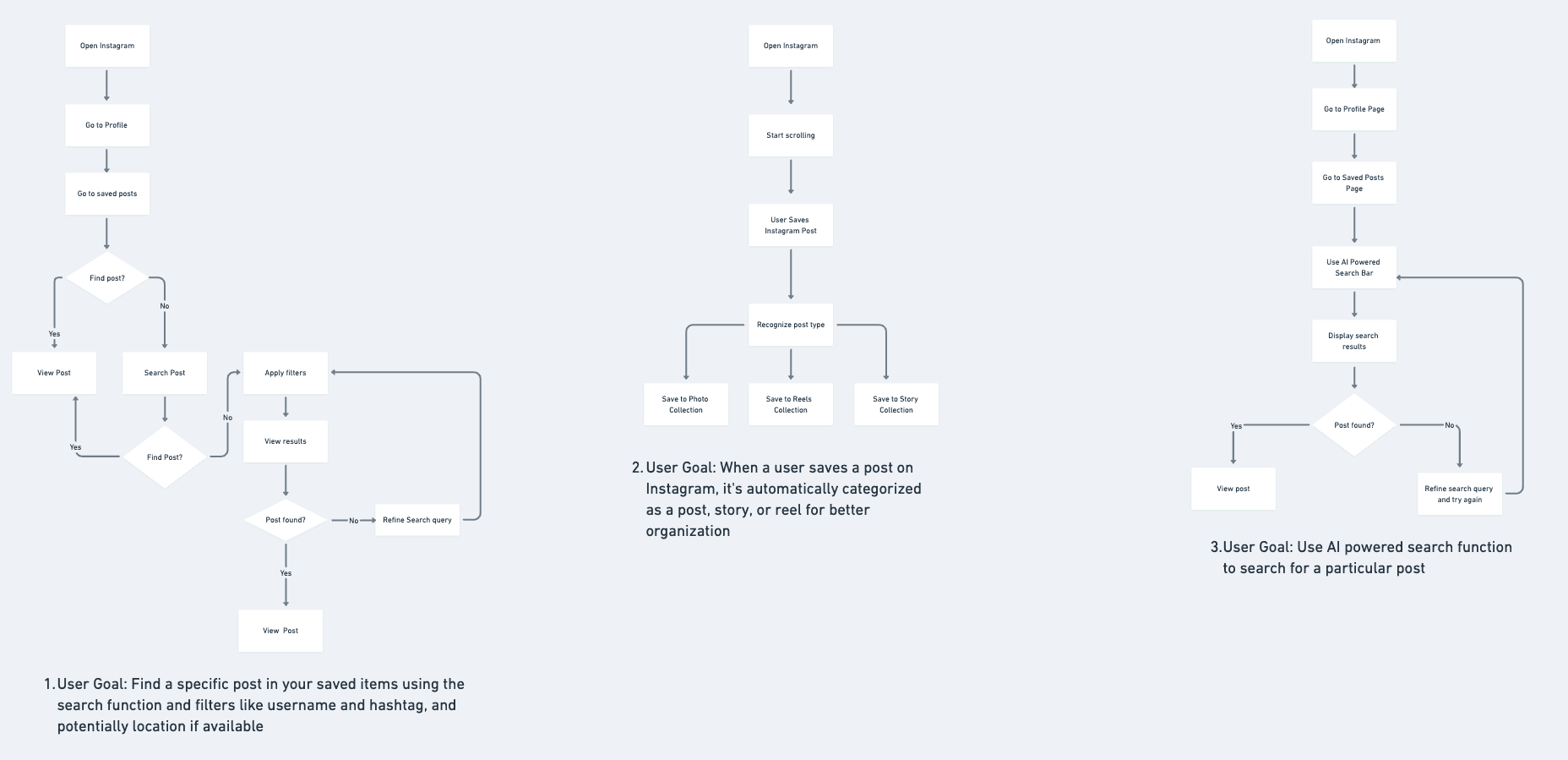 Conducted interviews with 5 frequent Instagram users to understand their needs and pain points related to saving and finding posts