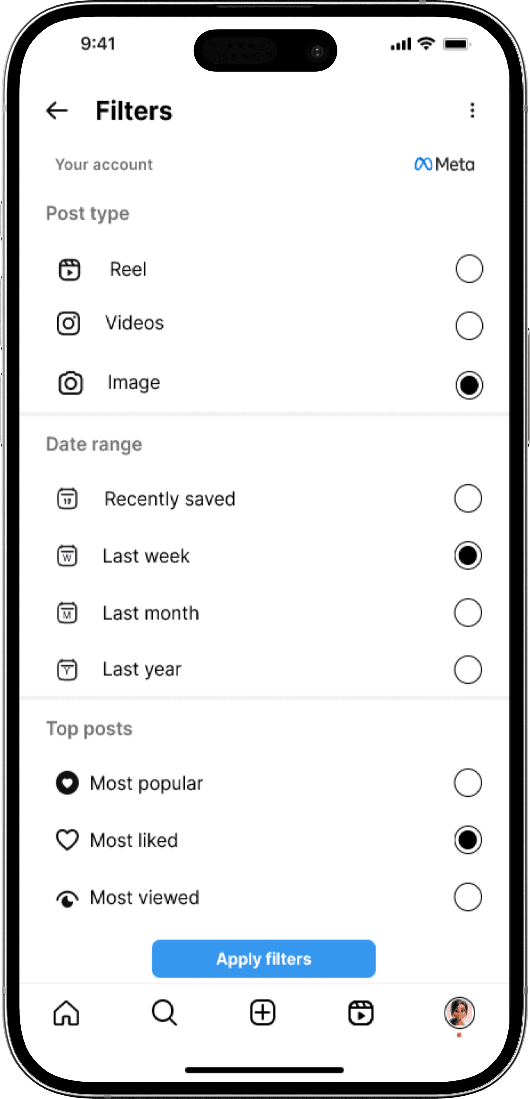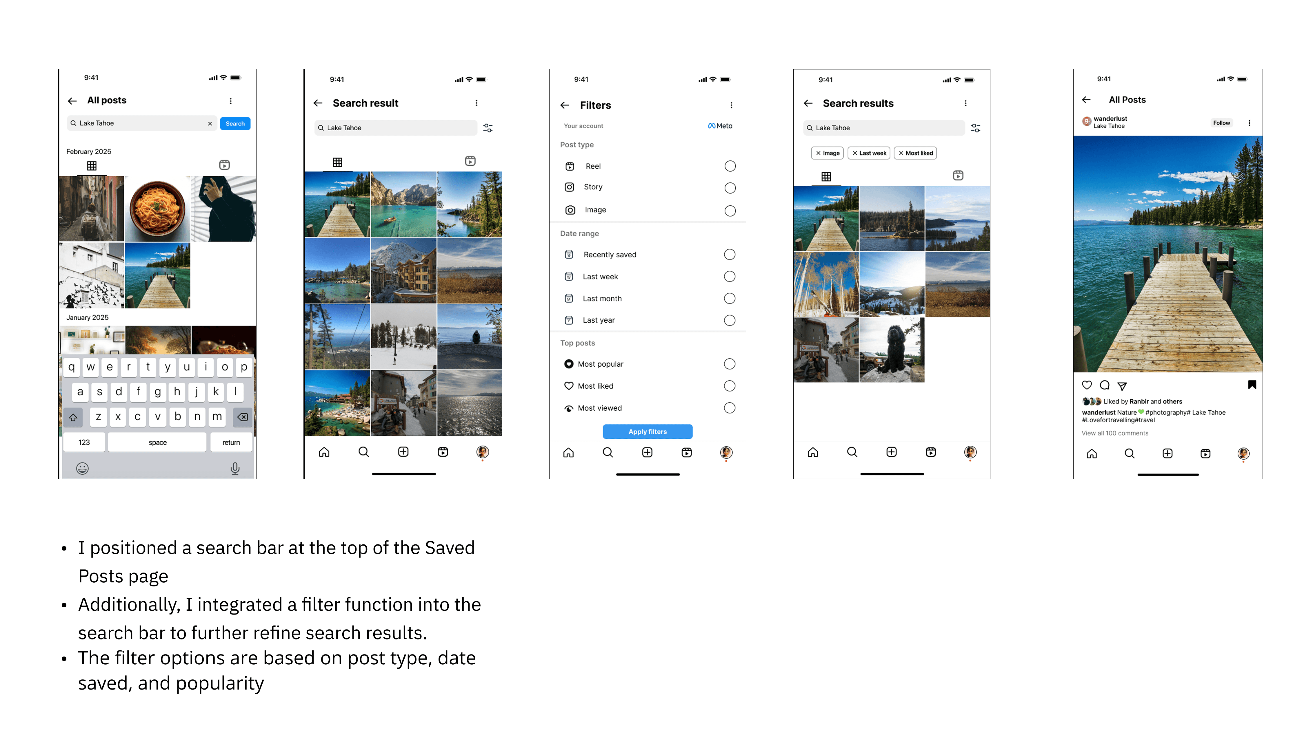 Adding a search function to Instagram's user profile to easily find specific saved posts, regardless of when they were saved