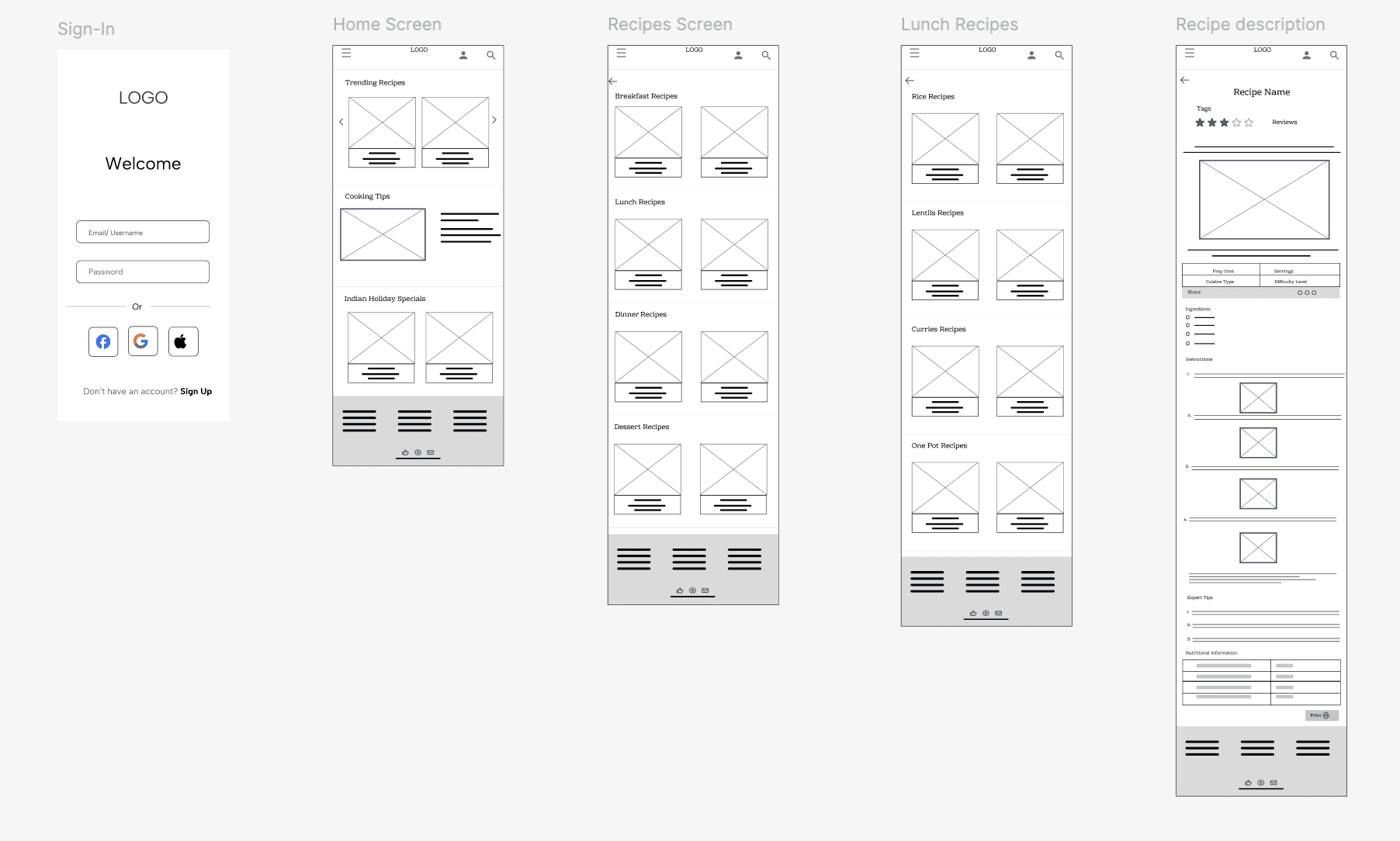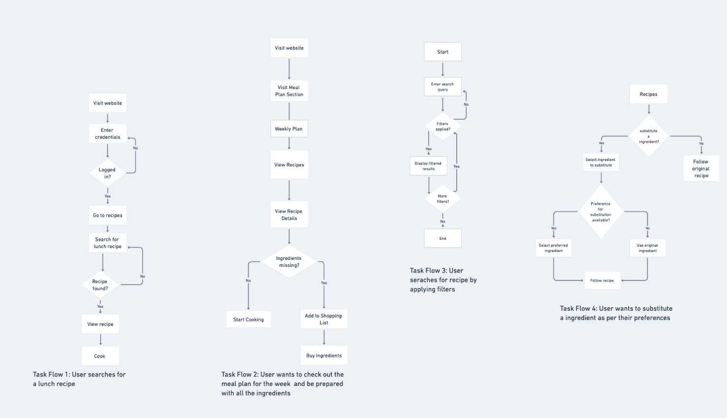 Following the development of user and task flows, I proceeded to create low-fidelity wireframes